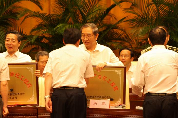 Âí²½¸±×Ü˾Àí(ǰ×ó)½Ó¹ý¹ãÎ÷ÀÊÄ·¾Æ¹¤Òµ»¯¹¤³ÌÔºÊÚÅÆ