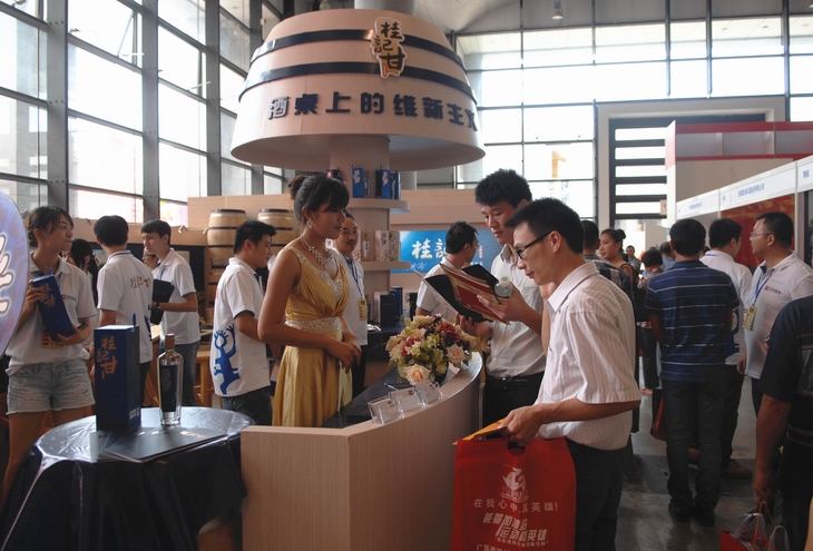 图为广西农垦糖业桂记甘白朗姆酒首次果真亮相现场。