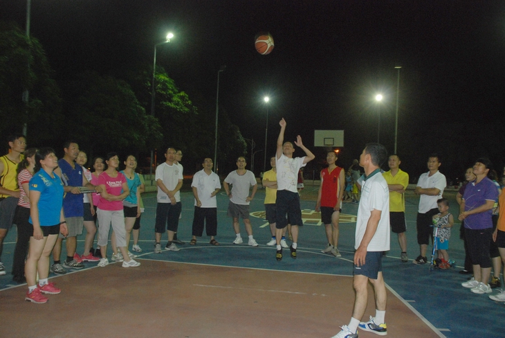 图为良圻制糖的职工在举行投篮角逐的情景。(莫燕选摄影报道)