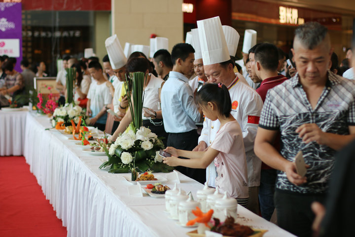 角逐就地,在牛扒巨匠演出赛环节,来自广西各大五星级旅馆的旅馆大厨和来自美国、法国的西餐大厨一展身手,现场全心烹饪牛扒,仅一会功夫,整个角逐现场都弥漫着牛扒的香味。别的,在国际美食立异大赛环节,参赛选手们划分凭证指定食材、自选食材环节的要求创作菜品,种种通俗的食材在参赛选手们手中一直被烹饪出种种鲜味的菜肴。其中,由万象城四海一家餐厅制作的“牛气冲天”特色全牛宴,震撼全场。中外名厨巨匠携手演出,国际美食的魅力吸引了现场观众外三层里三层,连4楼5楼都被围观的人群占有,时势热烈,人山人海,人气爆棚。