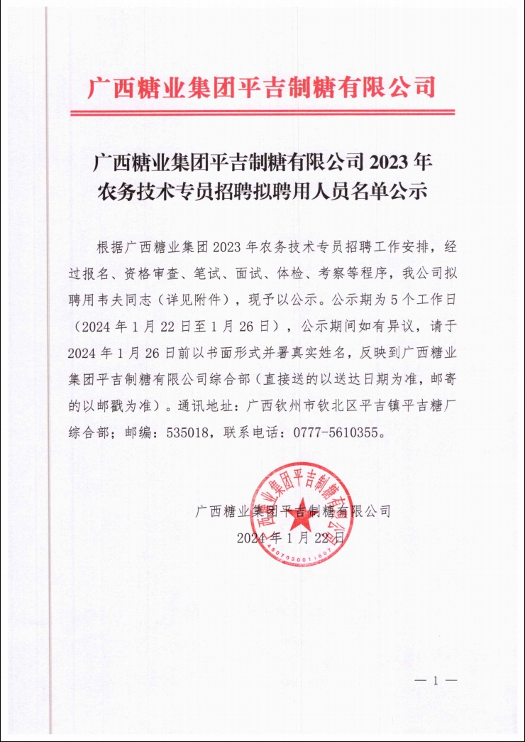 下一篇:广西糖业集团红河制糖有限公司2023年度秋季招聘拟聘用职员名单公示